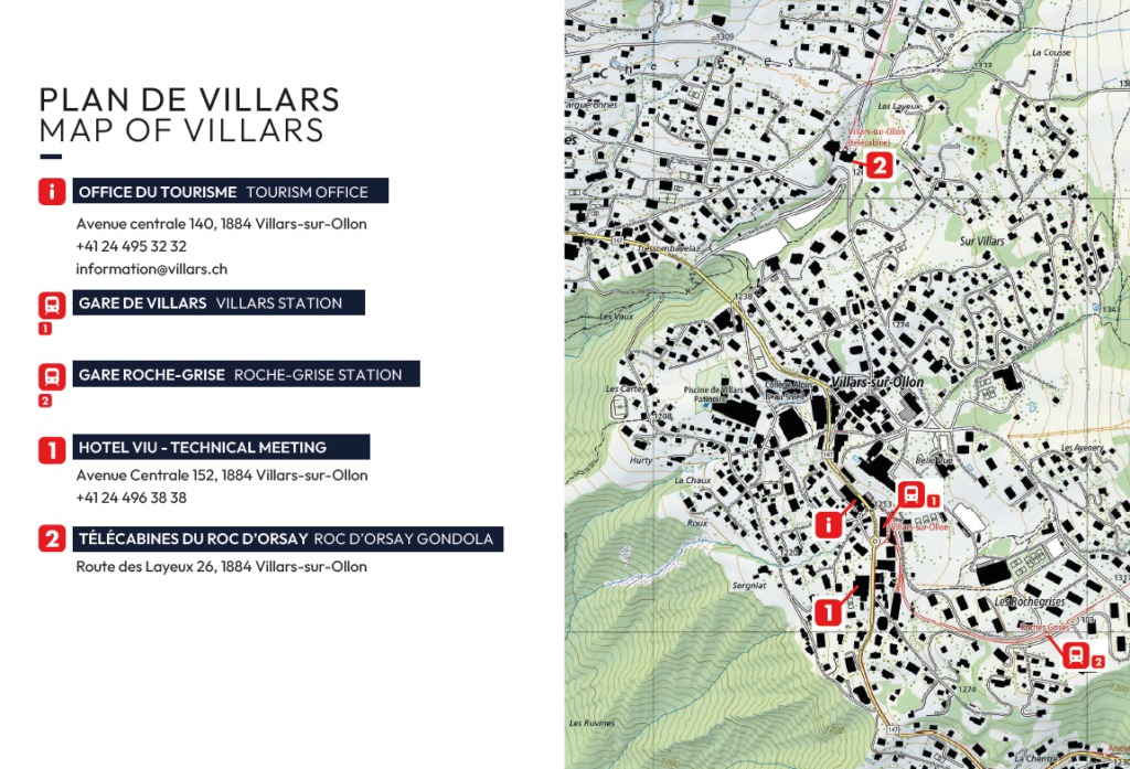 Situé à 20 minutes en train de la gare de Villars, le centre névralgique de la compétition se trouve à Bretaye, en face du Restaurant 1808.